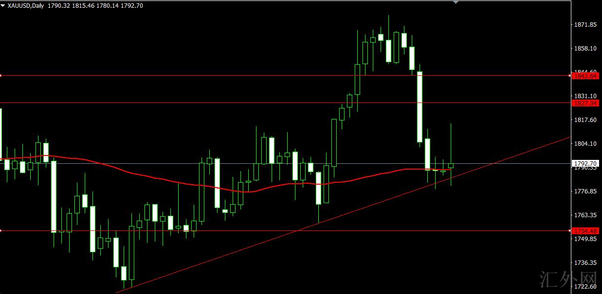 黄金星期五走过山车行情,最高上升到1815左右,随后又跌至这周低位左右,周线收大阴。单看周线,下周预期仍有一跌,但是日K线好像又下不去。周线压力1842左右,月线以前肯定到不了。以下支撑就是这周的低位1778,假使下周再跌穿1778,或许就去1765甚到1754左右。星期一行情不太好分析,推荐先关注亚盘如何开盘以及开盘后面的反映。当前小时线支撑1786压力1796,星期一亚盘注意1786-1796区间突破。往上击穿看1806-1814左右,朝下击穿看1778,突破看10美金以上。