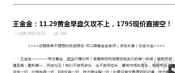 本文由王金金供稿,本人注解世界经济要闻,剖析世界投资大趋势,对原油、金银等大宗商品等有深入的研究,技术总监王金金在线解一套,亏损回本,一对一实时指导微一信。精准率和利润是检验实力的唯一标准!每天全将有现价单,可以前来体验!受于网络推送推迟性,以上内容属于个人推荐,因网络撰文有时效性,仅供参考,风险自担,转载请注明出处。