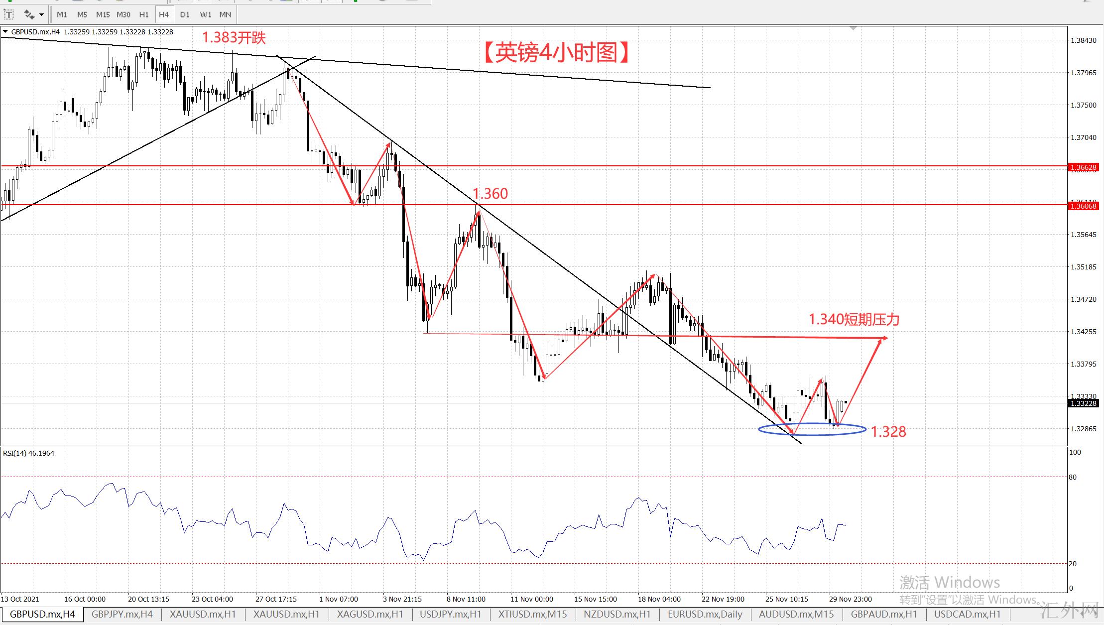 英镑4小时图:
