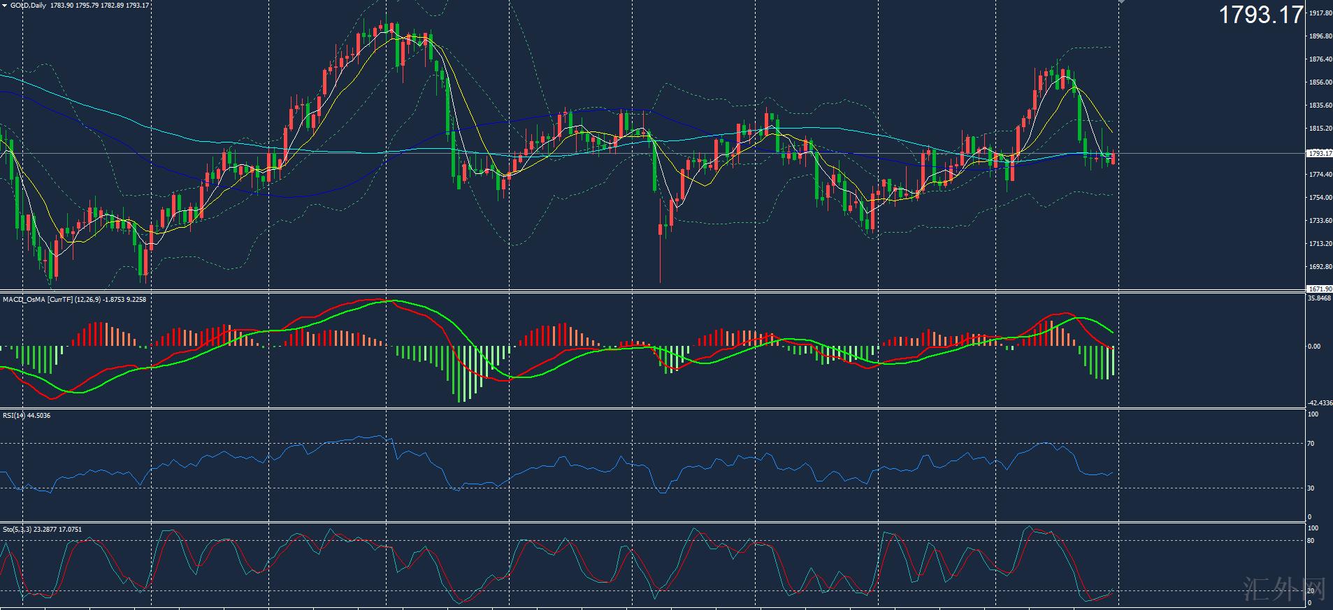 技术分析,黄金接连冲顶回调,日K线连排十字星是变盘节奏,整体上黄金依然是处在弱势调动中,行情看空,上周反抽1815左右形成回调,后面买方无力打击前高显示上周反抽有一步到位的机会。当前核心支撑1780左右,价格在此短暂形成持稳,只要没有形成强劲上涨击穿很难逆转短时间黄金弱势局势,经历反复调动昨日内新高点1799左右会是后面行情首要分界线,价格不能在此形成击穿那么黄金经历反复修正或许随时显现朝下击穿打破最近反复整理停摆。日间操作上江沐洋推荐回弹持续买跌。欧盘价格刷新1794买跌,损1800,计划1780-1782.