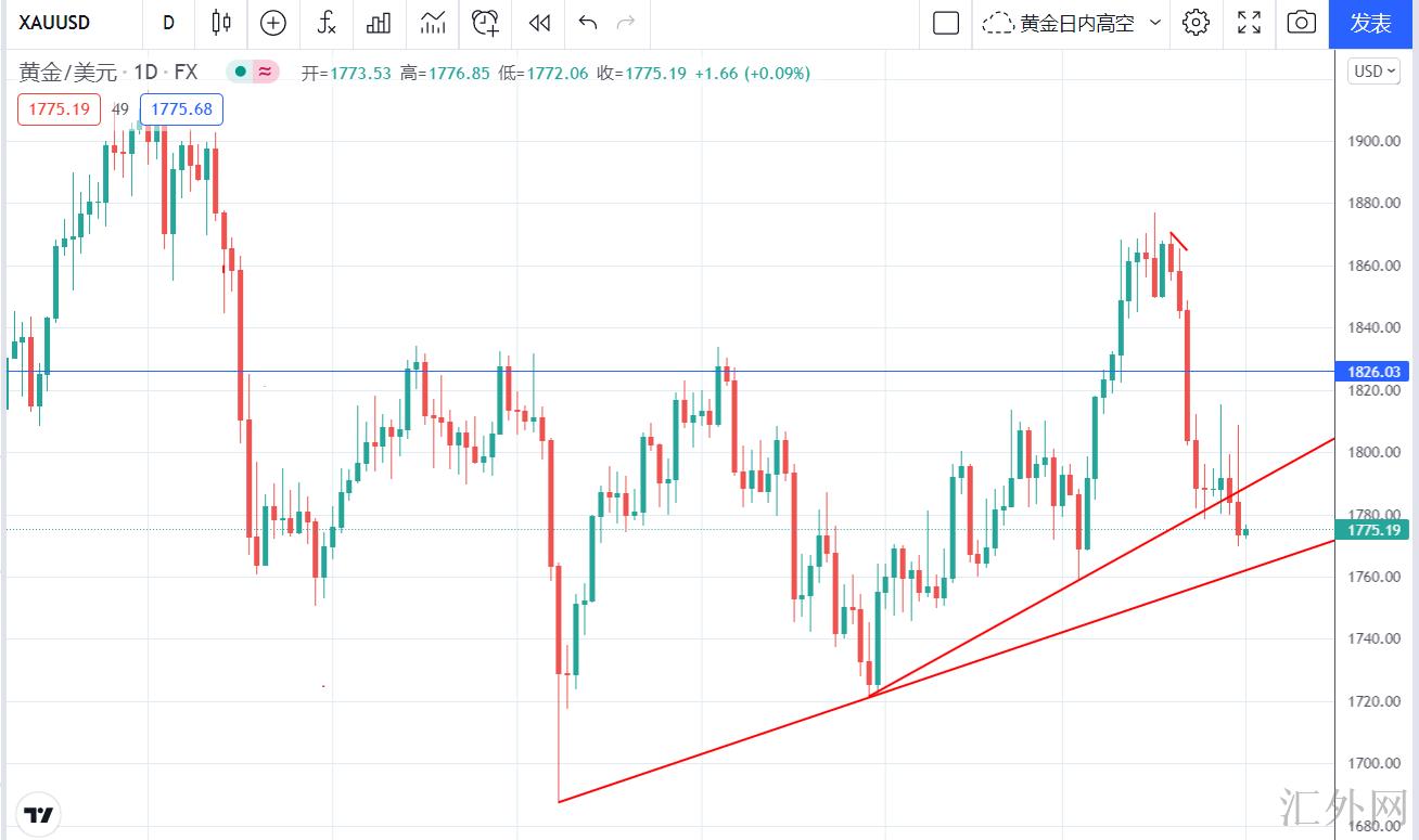 昨天月线依旧走了过山车行情,美元指数最终收长上影阳线。