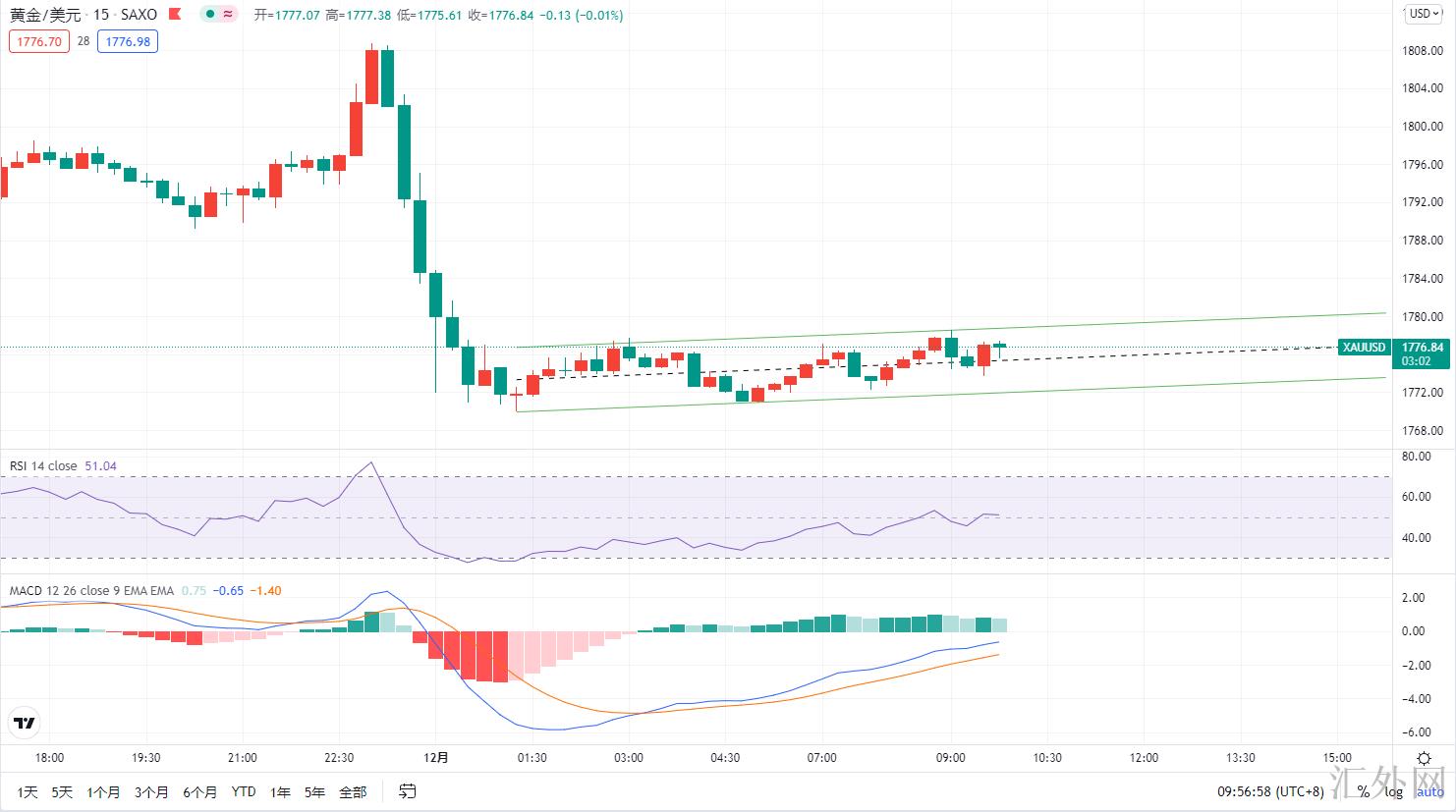隔夜,黄金开盘后面迟缓往上推涨,最高在夜里刷新1808,随后承受鲍威尔鹰派言论的影响迈出痛跌,最低刷新1769,日K线以一根带有长上影线的阴柱终结!