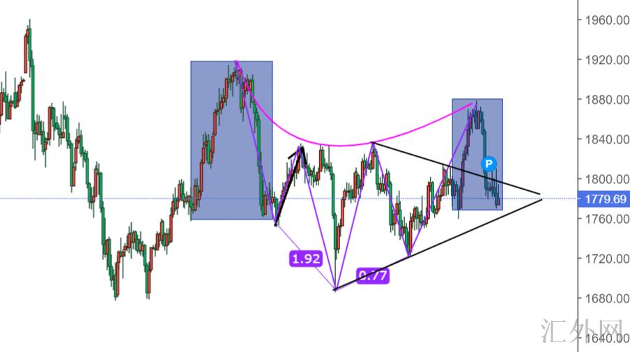 本来我们目前所处的交易规模是在1830到1676,然而历经了长达接连几个月的区域压缩,当下黄金价格已经完全沦为了1800的计算之争,而能够得到证实的区域预期,那就是1700和1800之间的百元交投规模,这也是决定黄金走入技术熊市调动的转折点。