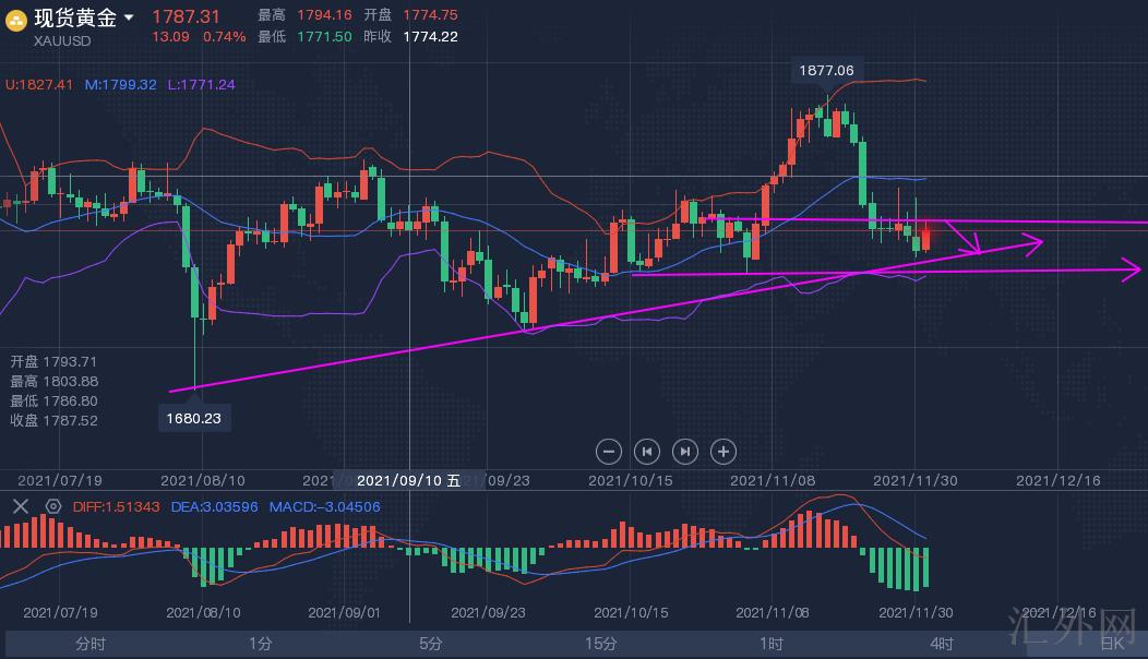午后金价显现极强刷新1794左右,趋势上黄金任然受日K线1680连接1720形成趋势线支撑左右,周末在周评中的就讲过我的思路,黄金就算朝下击穿1780形成单边机会也不大,以下务必朝下击穿1758日K线形成头肩顶结构黄金趋势才可形成弱势下挫,所以黄金依旧属于震荡结构,导致会反复破低沿着震荡下探去运行。两点附近金价走极强上涨,一分钟拉伸1794左右。早盘我的思路也选择1781空了,对于当前趋势我觉得仍需要空。很简单,昨日凌晨黄金环绕1780以下弱势修正,今天早盘仍未形成保持,今天全市场都在看跌,忽然迈出大涨洗盘我并没有无意中,但是假使黄金想走震荡下挫,就不会给昨日1800左右追多的筹码出局是的可能,所以只要不又一次立稳1800坚持看震荡下探。