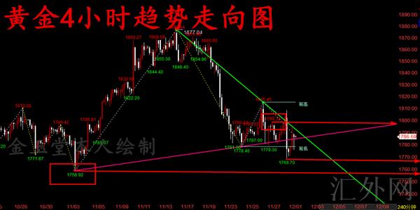 2、黄金在何时买涨合适呢?那就是等黄金再次刷新新低回弹的时机再布局短线多单,而当前以下着重的支持就是看1758-1760,而昨天新低1768低位一旦跌穿也不要着急追空,毕竟再次刷新新低还将有所回弹,但买方不要拿太长时间,利润也不要拿太多,毕竟强劲的卖方趋势下,哪怕回弹,也导致适当修复,不会有太大的回弹强度!