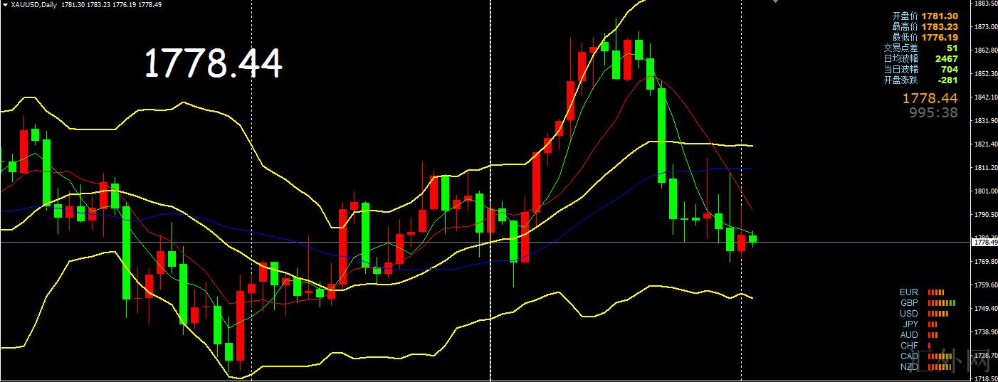 美市收盘,黄金现货收报得1780.97美元每盎司,上升7.00美元或0.39%,日间最高刷新1794.45美元,最低刷新1772.07美元。