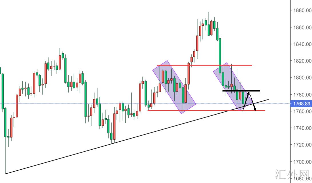 但你别忘了,就算1808的反跌耀眼,那也是由于市场押注鸽派情绪失利致使的,而后续几天尽管没再痛跌,但任然保持着每天震荡下挫20美金附近的区域运行,你不应当在这时候对黄金价格受挫,由于市场是公平的,你要知道1760对于买方们来讲是多么重要的一个关键点位。