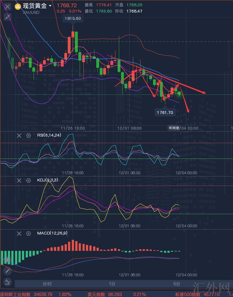 (12月3号)黄金现货持续走跌,星期四(12月2号)黄金价格跌创下一个月新低,因投资人注意到美国货币政策正在趋于鹰派,这有利于在将来限制通货膨胀的上涨。此外,美元和M股的上涨也冲击了黄金价格行情。但新一次流行病的扩大和欧洲中央银行的鸽派态度仍帮助黄金价格制约下跌趋势。