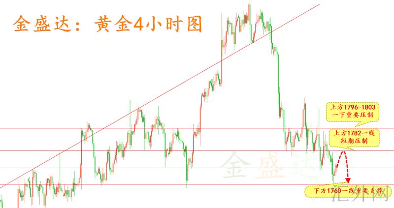 昨天的黄金整体依旧下探行情,震荡的程度并没有是特别大,最低刷新到1761一线,盘面整体显得依旧比较弱势,它属于暴跌后的保持行情,今天的思路我们需求保持持续看空,从形态来说这段黄金还没有到底信号,无论是指标依旧K线都仍有下挫空间,如此的行情我们需求的是跟随,并非是一味的去猜测底部,今天思路依托1782的阻力持续买跌,这周黄金尽管是底部大震荡,如此的行情节奏更重要 ,把握好节奏后才可以游刃有余,最近的黄金下挫首要有几个原因打压,一个是美元大周期显现强劲,此外美联储放出了加息信号,在一定程度上打压了黄金,此外最近发布的劳工报告也表现的比较好也是打压黄金。