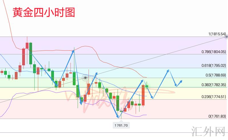 黄金从4小时图来说,黄金从本星期一开始看4小时多次底背离筑底,截至到迄今为止,黄金在4小时上已经迈出了二次底背离了,黄金迈出了1762的新低,满足了二次底背离对于低位的需求,当前来说,在1762显现后面,小时线级别也迈出了二次底背离,预期黄金依旧会像前几天一样,在迈出新低后面会显现回弹,回弹后面持续走新低如此的震荡筑底,程度不会很大,但是会保持很久,是极需求耐心的一件事。日间黄金临时维持看调动预计,以下持续注意1760左右争夺,技术上也允许行情回撤1750左右,上方则注意1795-98左右短压试探。综合来说,黄金下周短线交易参考上张茗析老师推荐高空低多布局操作为主,上方着重注意1795-1798一线压力,以下短时间着重注意1770-1767一线支撑。【点击头像=添加=张茗析获取实时指导】