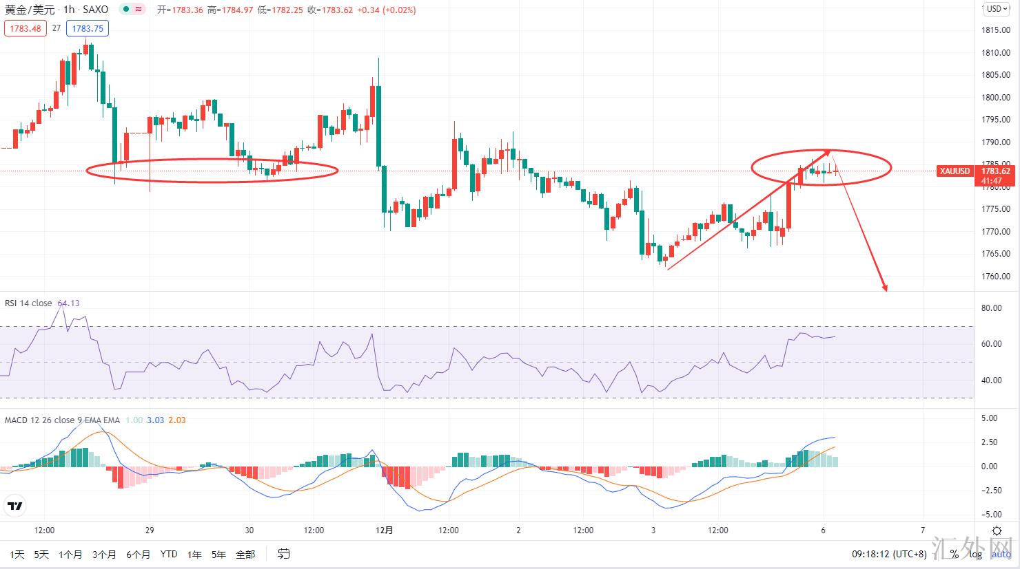 上星期五,黄金开盘后面持续维持低点震荡,非农就业报告发布后面黄金上下扫盘随后迈出推涨,最高刷新1786,日K线以一根吞没阳线终结。