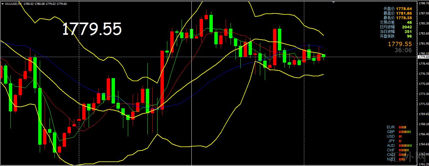 星期二(12月7号)亚盘时间,黄金现货交投于1779左右。星期一(12月6号)黄金价格适当下挫,市场对Omicron忧虑情绪遇冷,美元指数及美国股上升使黄金价格遇阻,但隐藏的货币宽松与经济刺激仍有利于支撑黄金价格。黄金价格最近深陷震荡阶段,市场还在观望更深一步的基本分析消息作用以及美国星期五的重要通货膨胀报告,然而技术分析对买方依然十分没好处。日间关注澳大利亚12月利率会议、美国贸易帐等。