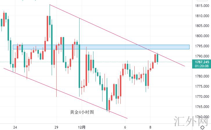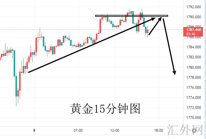 此外,从行情结构上来说,黄金在15分钟时间周期,显现了跌穿前低1787.5的情形,但是立即被强劲拉回,30分钟及1小时时间周期收盘并没有显现突破的情形,当下也只能先作为黄金的一个15分钟的扩展行情来说待。只有形成了30分钟甚到1小时级别对1787.5收盘突破,随后回弹然而前高,才是行情遭遇阻力下挫的开端。