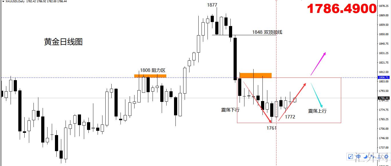 而基本分析,一面是Omicron变异病毒蔓延,连续为黄金导致适当的避险支撑,而另一面,市场觉得明日将要发布的CPI通货膨胀报告极高,预期将更深一步刺激美联储加速缩紧货币政策。如此的预计也压抑了近期黄金的上涨趋势,再加之下周将令是美联储的利率会议,假使本轮通货膨胀发布的确较高,需求注意市场提早走预计的机会,那么黄金想要真正上升,仍需要等到利率会议靴子落地,有好处空头出尽后面,才可显现。