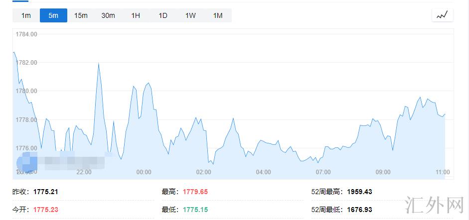 星期四黄金现货震荡下探,在1774左右有一定支撑,收盘下跌0.37%,报得1775.47美元每盎司。