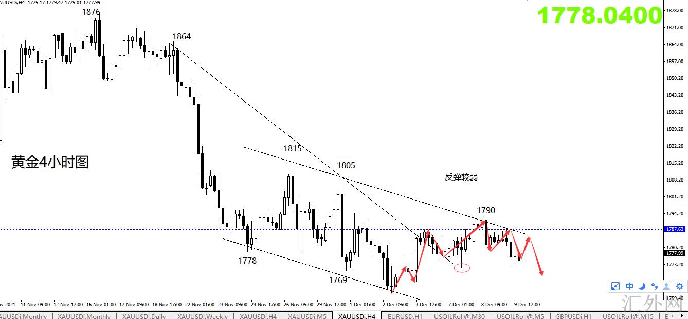 至于夜里CPI报告,需求关注的是今天白天行情,会不会提早走预计,假使今天白天行情连续较弱,而且跌穿1772一线,则表明大约率是在提早走CPI的预计,那么夜里CPI报告发布需求注意显现有好处空头有限的机会,到时,即使符合预计在6.8%上涨,预期适当下探后再上涨的几率偏大,若不符合预计,甚至差于前值,则将令动员黄金的上涨。