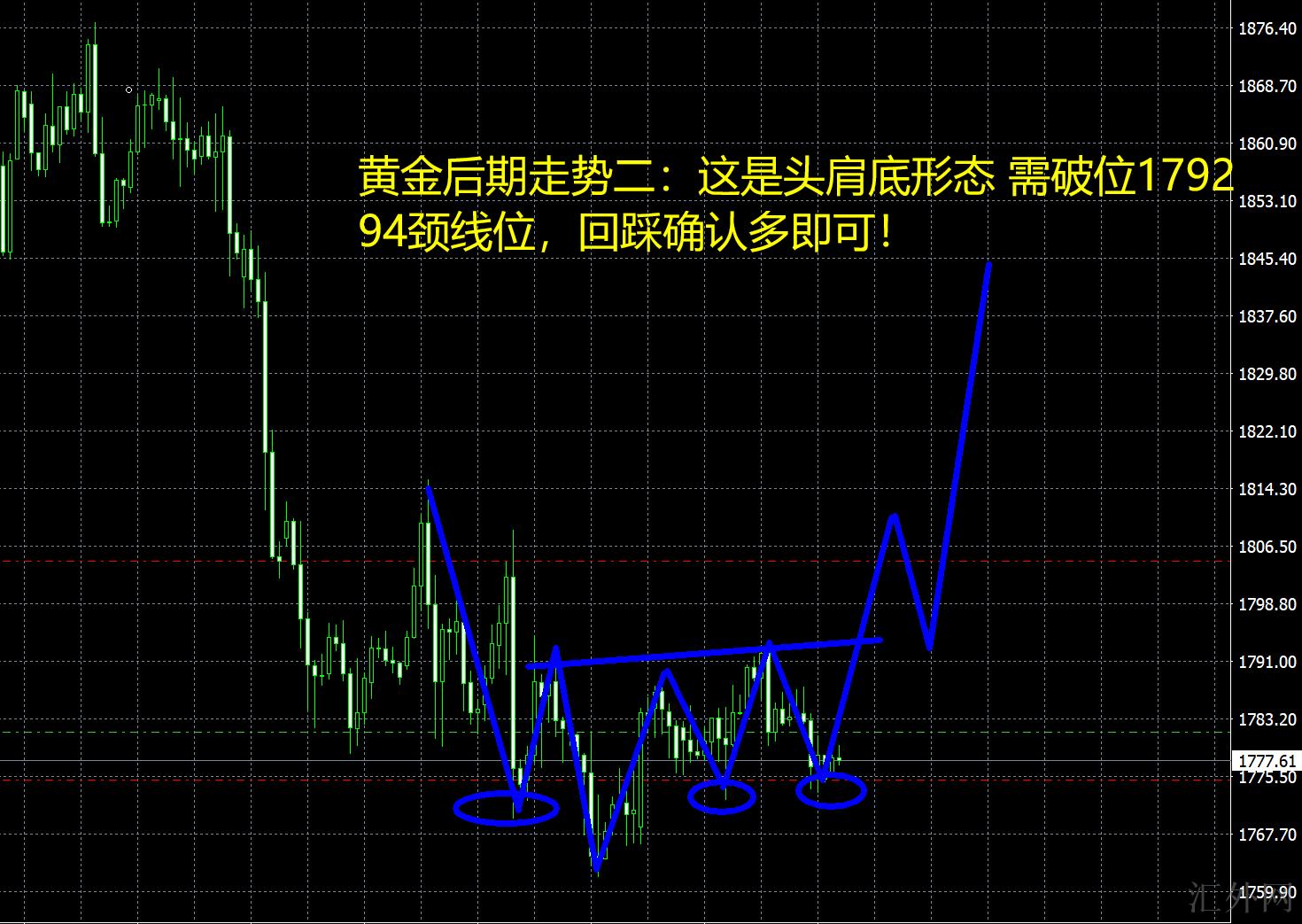 该种行情证实信号只有一点:那就是1792 94突破立住。那时候即可回踩颈线位买涨,胜率一般是9成以上。