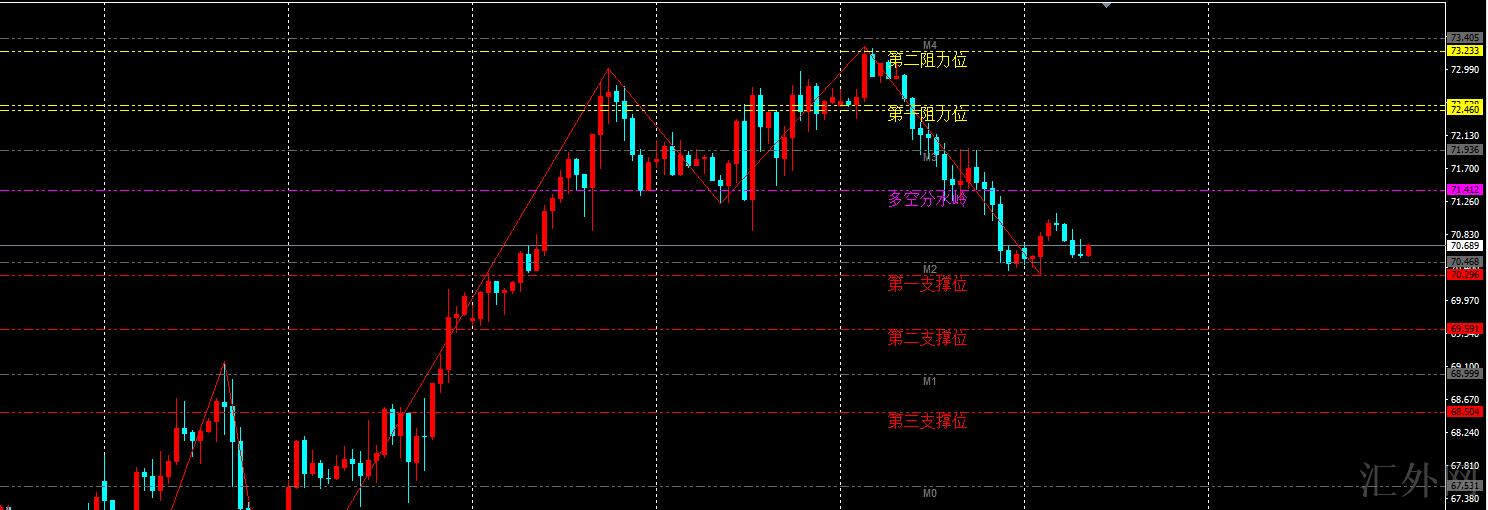 但短时间内原油则持续注意70关键点位支撑情形,只要突破70原油就有希望回补空缺位置,日间依旧注意70/69.5/68.5支撑情形,持稳后持续回弹,再下探