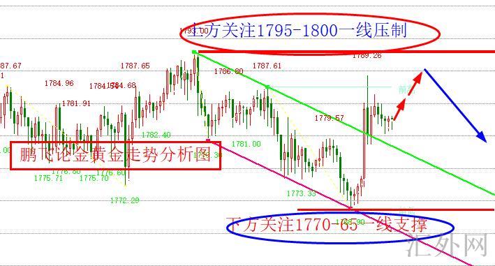 从4小时来说,黄金价格在试探突破的顶底转换位1787没有成功后震荡下探,当前已经形成了短时间内的震荡下探结构,然而受于昨天没有跌穿前一核心低位1772,所下方挫空间比较有限,当前4小时的顶底转换位已经从1787移动至了1785,日间关注此位置的抑制情形,不消除刺破的机会,回弹的极限位置预期在1790,此位置是4小时下探通道上缘压力,只要4小时没有实体收在1785上方,下挫结构就不会失效,以下着重注意1772一线的得失,一旦跌穿此位置,低位破新低,将令更深一步证实短时间内黄金价格的下探,下探空间也将打开,甚至有跌穿1760的几率,短线操作层面注意1787-1789一线的空单机会,初始计划看1772左右,更深一步看1765。综合来说,下周黄金短线交易参考上鹏飞论金推荐高空为主,低多为辅,上方着重注意1790-1800一线压力,以下短时间着重注意1770-1765一线支撑。