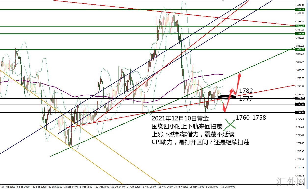 黄金昨日(12月9号)震荡下挫收低,开盘保持在上一日高位1793以下弱势整理,同期也是4小时级别的布林道区间下缘之内运行。受于美元走高。日K线收盘一根中阴K线,结合星期三的十字K线配合中阴线回调遇阻收低,日K线回到弱势区间,而在此之前的回弹续量不足,日K线进入偏空震荡,但当前的结构也导致震荡。临时看不出单边,偏空是小级别的看好于朝下行情。今日周线收官,留心周线和日K线是否收低走弱。4小时图从布林道上缘遇阻回到至下缘处震荡,整体依旧窄幅缩减震荡当中,然而周初偏多震荡,多次攻击上缘,但始终未能形成区间的突破保持。昨日回测下缘收低后,4小时图仍处在突破下探趋势线之下运行。而布林道依旧收口当中,区间有所下探。上方1790-1793形成短时间卖方防守临界点,此位之下震荡看空,今日交易参考保持在上缘之下择机高空。昨日的高位在1787.中轨压力在1782-1783左右。多空强弱来回拉锯,保持性是一个困难。亚欧盘暂设在1785-1790左右择机短空。往上击穿区间上缘再调动思路,在震荡行情中择高点空,看收低走软。空间结合形态边走边看。未突破低位以前也然而分恋战。综合来说:今日黄金操作上李钜溢推荐短时间上方着重注意1795-1800一线压力,以下短时间着重注意1770-1765一线支撑。