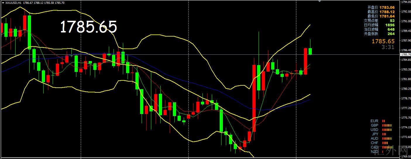 上星期五黄金价格受CPI回暖影响黄金价格按计划迈出了摸底回涨,盘中最低1769.8,最高1789,收盘以一根带有上下影线的中阳线报收盘在1782.8。