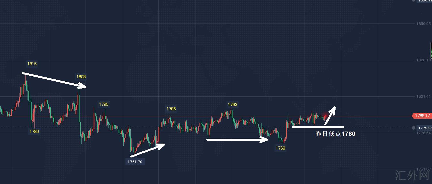 昨日星期一行情震荡差不多保持在震荡区间震荡,高低位较为显著,低点1780左右,高位1791一线,形成区间往返,较为显著的折返来回震荡行情,那么星期二预计依旧保持如此的行情运行,短时间不能有效突破区间,都已如此的方式行情来对待,着重关注欧元兑美元盘机会,早盘的震荡突破机会否很大。
