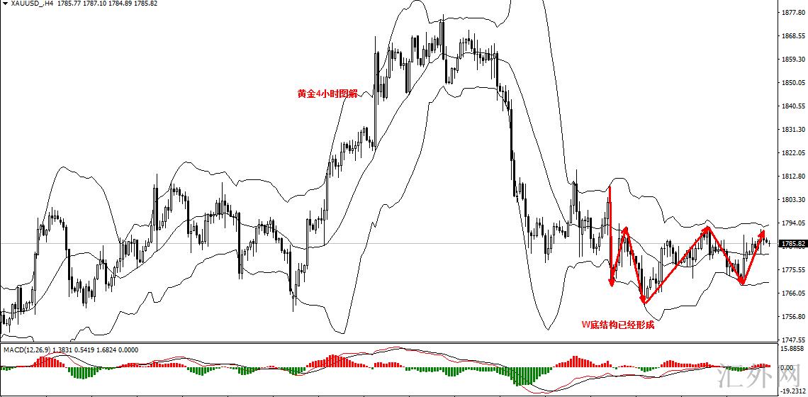 从K线结构上来说,黄金已经显现底部信号。周线中轨触碰多次,但任然有效。那么我们就在1780-1790之间做高抛低吸,不要追单,不要重仓。