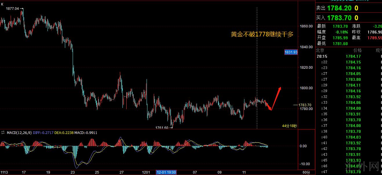 12.14策略逻辑:黄金1780-1782多,止损1775,目睹1790-1796,突破持有