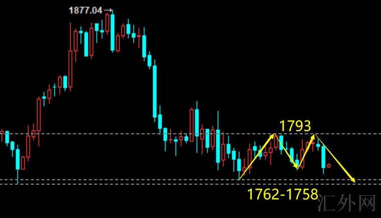 操作上,学员星期一1782买涨获利后星期二没有及时调动,1778买涨止损一次,美盘1777调仓买跌最低1770,日间推荐顺势跟空;