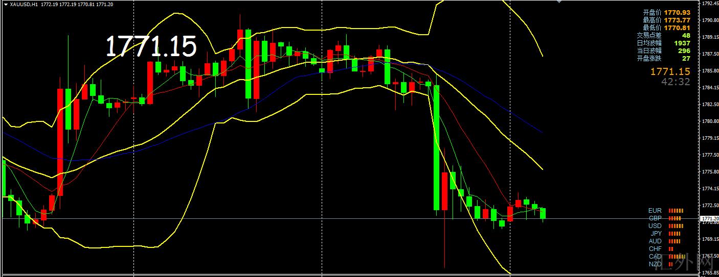 从四小时图表来说,价格至上线*到昨天欧盘弱空初现,美盘正式转空下挫,当前价格运行于下线左右,形态上短时间均线死叉朝下,修正将更深一步朝下,而小时图亚盘弱多初现,哪配合30的修正预计回弹依旧在30的上线这一带,所以综合得出结论如下:日线图空,四小时刺破下线运行于下线一线形态上依旧空,但今天仍有利率会议一旦有转折显现要及时调动,这点一定是盘中运行中才可发现,二是等小时图修正终结及30转空后顺势进场,以下着重注意1766和57的失守,失守以下看45下缘和23增速线这里。