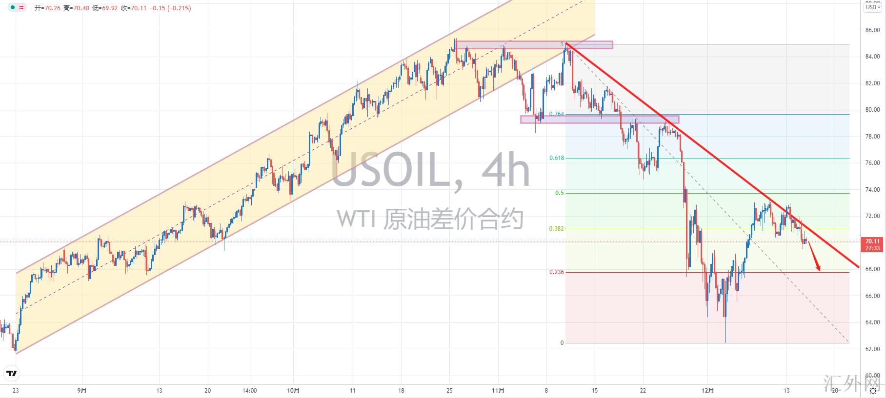 【技术点评】:H4周期,原油维持趋势线抑制下的卖方行情。
