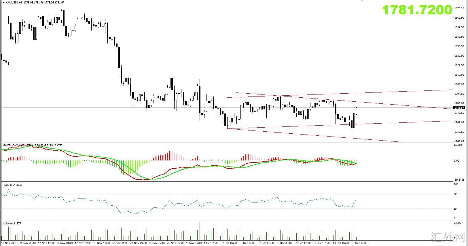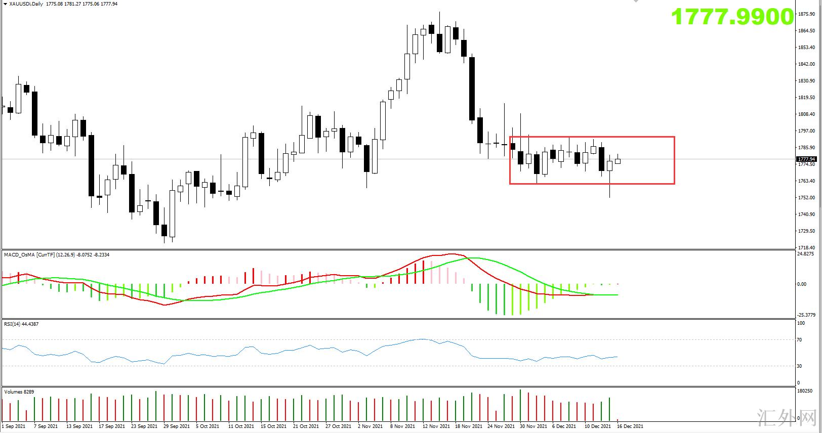 凌晨的美联储利率会议让市场悬着的心放下了,美联储一如市场预计一样,宣称在1月份开始增速缩债,至于加息的时间节点没有说,但是点阵图表明,明年美联储大约率将加息起码三次,这一点也是符合在此之前的市场预计,综合来说,这次的美联储利率会议不鹰不鸽,比较中性,各类态度也符合市场预计,所以,对市场的影响也总体较小,黄金也导致发生了不足20美元的迅速回调,而且也已经收回了全部降幅了,整体来说,任然是保持在低点的震荡行情。