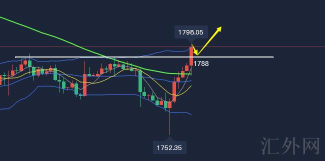 黄金昨天夜里给了一个空翻多,深V反转,整个结构来讲,当前导致上升的第一次,四小时级别是接连的第五根阳线,后面会针对1877到昨天夜间下挫的低位1752起码给出3波回弹,整个的上涨假使涨的特别不错的话,先不谈反转的情形下,是有机会回归1820/1830区域,假使回弹的不好,那就是1800以上一点点;技术分析黄金日K线方向中期趋势看多局势不变,经历持久的回调以及震荡后面,目前一小时级别迈出异常完美的底部扭转形态,这代表着最近阶段性调动终结,接下去将迈出一次波段上升!黄金4小时大阳线立住4小时中轨,短线偏多运行,15分钟今天在高点迈出了一个引导楔形形态,当该种结构走完后大约率会推涨一次,不一定会推涨不少,1798区域这个位置也是以前一直没有以往的点位,这里很有机会会挡住第一次的上涨趋势,进而形成回调。日间操作上江沐洋推荐回踩买涨为主,回弹高空辅。