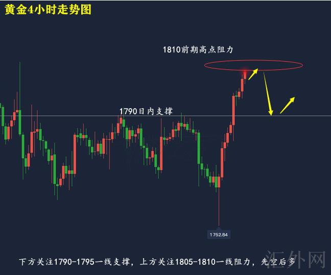 回弹1805-1810左右买跌,止损5美金,计划看1790-1795左右;