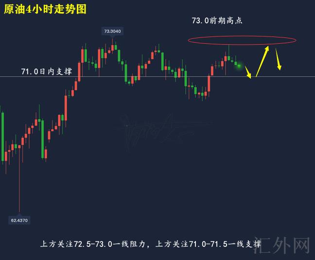 回弹72.5-73.0左右买跌,止损0.5美金,计划看71.0-71.5左右;