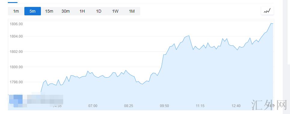 星期四黄金现货连续上探,收盘上涨1.26%,接近千八关口,报得1799.39美元每盎司。