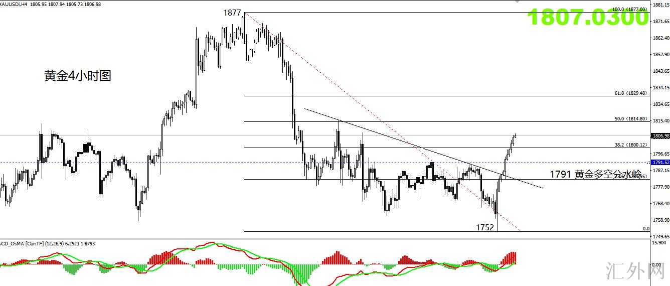 短线4小时层面,黄金价格在击穿了从1815以来的下滑趋势线抑制后,连续慢涨,开放4小时级别的上涨,k线收录九连阳的状态,仍未显现滞涨k线,短线可以注意1814.8压力的试探情形,此位置是从1877以来的50%调动位,同期首次在1778受支撑回弹的高位亦在此,受于从1752接连的上涨,预期到此位置一口气冲破的几率偏小,刷新可以斟酌短空做回踩,以下则注意1800-1795的买涨机会,防守放在1790以下。