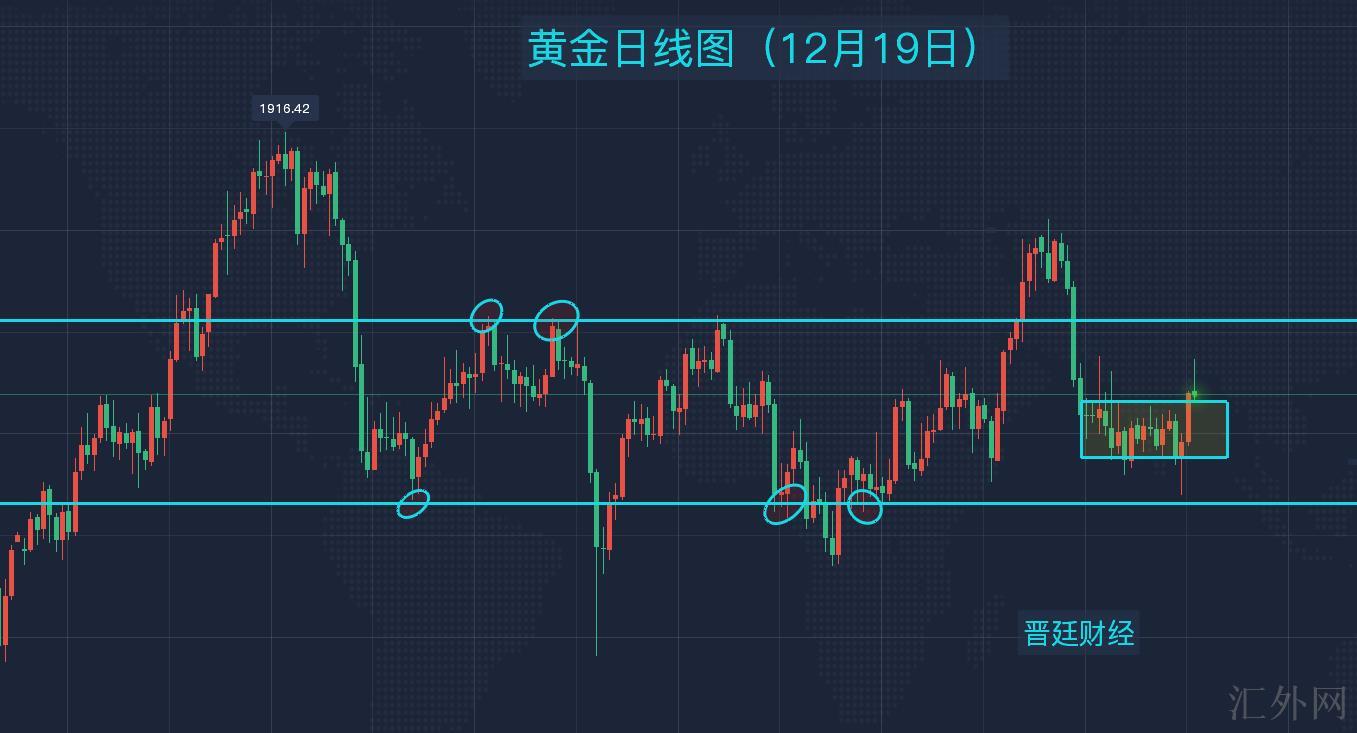 这周(12月13号—12月19号当周)黄金开盘于,周初持续保持上一周的震荡整理行情,星期二(12月14号)打破整理局势,黄金价格大幅回调,星期三(12月15号)黄金价格创下这周低位到1753.7美元每盎司,星期四(12月16号)凌晨美联储发布利率会议,承认了通货膨胀并不是临时的,黄金价格在美联储会议后面卖预计买真相,迈出了一次攀升的行情,黄金价格大幅推涨,星期五(12月17号)创下这周高位到1814.2美元每盎司,收盘适当回调,最终收盘于1798.1美元每盎司,上升15.27美元,升幅0.86%,振幅3.39%。