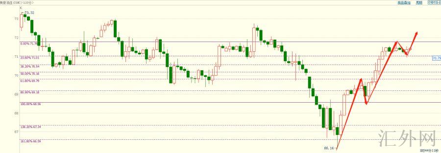 原油自打日K线级别止跌以来,买方的状况从未让人受挫,价格在持续的升高,昨天夜里价格面对黄金分割61.8%的抑制导致造成了50余点的回调便又一次展开上涨,自此可以看出原油处在及其强劲的状态,在该种状态下买跌的念头短时间强需求回避了,维持顺势而为的原油,夜里推荐等候价格回调到71.00一线多单介入,风控点放置70.50以下,计划位目睹71.80~72.00。