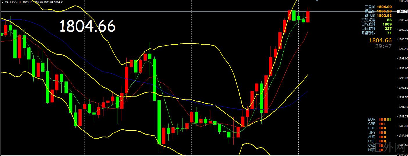 昨日黄金交易市场亚盘开盘在1788的位置后,行情适当回踩1785.6的位置后行情开始震荡上涨过程美盘开始时段刷新1795阻力后行情回踩后行情承受基本分析报告推升行情强劲推涨,日K线最高刷新到了1805的位置后行情整理,日K线最终收线在了1804.7的位置后,日K线以一根下影线稍长的饱和大阳线收线,而如此的形态收尾后,今日的行情斟酌节前的短多,上方压力注意1814-1820,以下支撑注意1788-1790.