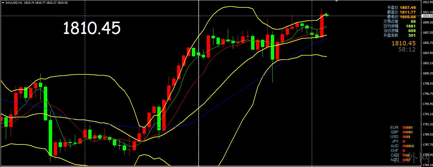 上周黄金交易市场周初开盘在1798.65美元每盎司后行情先回调,周线最低给到了1784.6美元每盎司后行情展开推涨过程,周线最高刷新到了1810.5美元每盎司后行情整理,周线最终收线在了1808.3美元每盎司后,周线以一根下影线漫长的锤头形态收线,而如此的形态收尾后,这周保持震荡看多。日K线形成下探回涨的蓄势往上,加重了短线震荡频率,临时看不出较强的单边,阴阳互换。强弱转换频繁。实体K线容易更改日间多空强弱。伴随日K线的启稳回涨,短线看多。4小时回踩修正后面,昨日启稳在1790上方回涨,从底部的上涨后面的第一次回踩证实,守稳击穿口1790后的再上涨,4小时K线形成连阳上涨,收回并立住1800上方。今日短线先看保持性摸高往上,空间边走边看。震荡为前,趋势为后。今日支撑在1795左右。短线压力位注意1815水平,更深一步击穿后将保持上升。综上所述,今日操作上斟酌回撤布局多单为主,上方注意1815-1825美元每盎司,以下注意1795-1798美元支撑。无意中朝下击穿就需求从新布局。