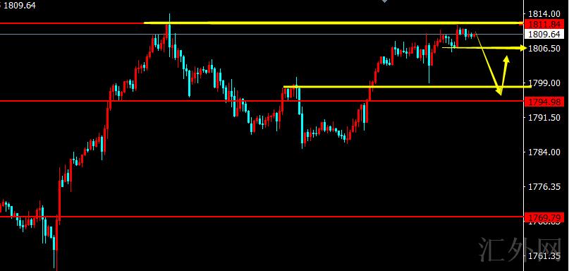 第二层面就是在最近内的买方保持当中,短线内买方毫无击穿之意,许多的依旧迈向盘整遇阻的趋势,那么此动作也很有机会会致使后期的买方能量不足,而当前黄金以下的着重支撑则保持于以下的顶底转换1795一线,后期买方的保持也有机会会又一次形成回撤当中的洗盘,而在当前黄金没有形成大击穿以前,此区域位置买跌也是上策。则欧盘黄金于1810-1811左右直接买跌等候,止损1816,止盈看1804-1795区域;
