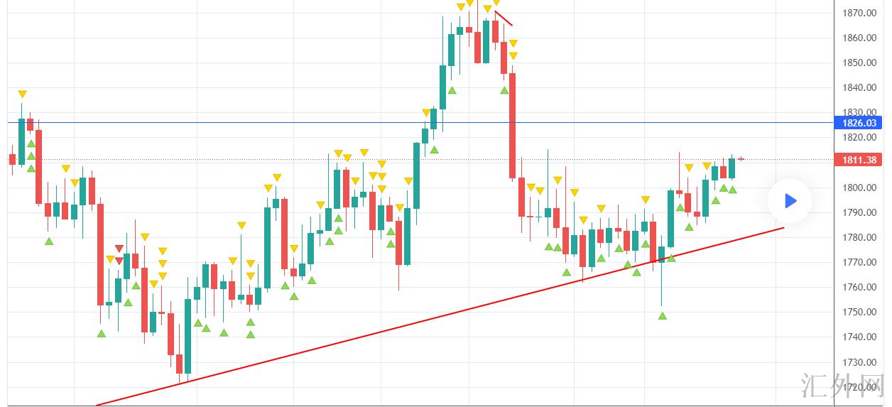 黄金昨天1802左右持稳上升,最高1813,假期原因行情不大。日K线收阳,今天持续看多,支撑1807左右,昨晚回调的低位在1806,刷新可以买涨。但是4小时支撑在1809,也就是行情走高的话会在1809一线开涨。上方1814左右已经很盘很久,这个位置我个人倾向往上击穿。但是不少时候核心位置,一旦往上击穿很容易增速。假使行情有效击穿1815持续看1830左右,顶底转换在1840左右。假使1815不能突破,还会像以前的1834一线,持续震,随后趁人不备突破后一步涨到位。