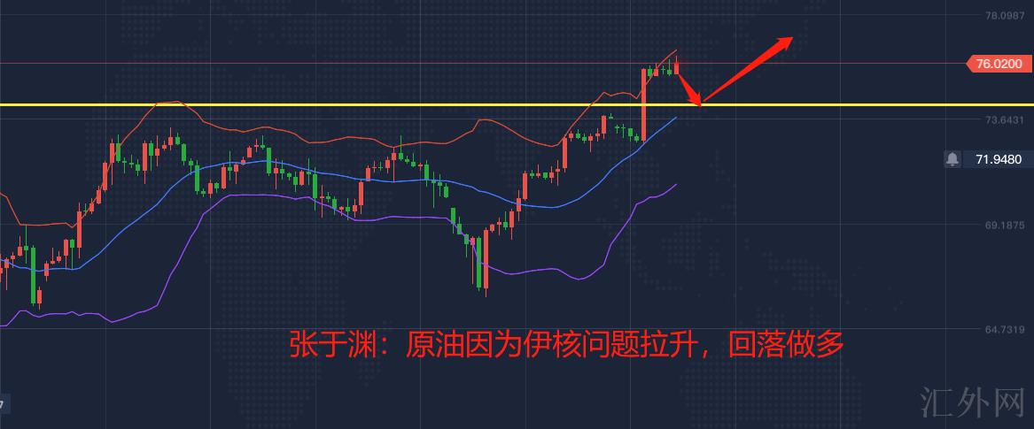 12.28黄金强劲修正谋求击穿,1820左右空一次!原油由于伊核困难强劲推涨,回调74.9多!