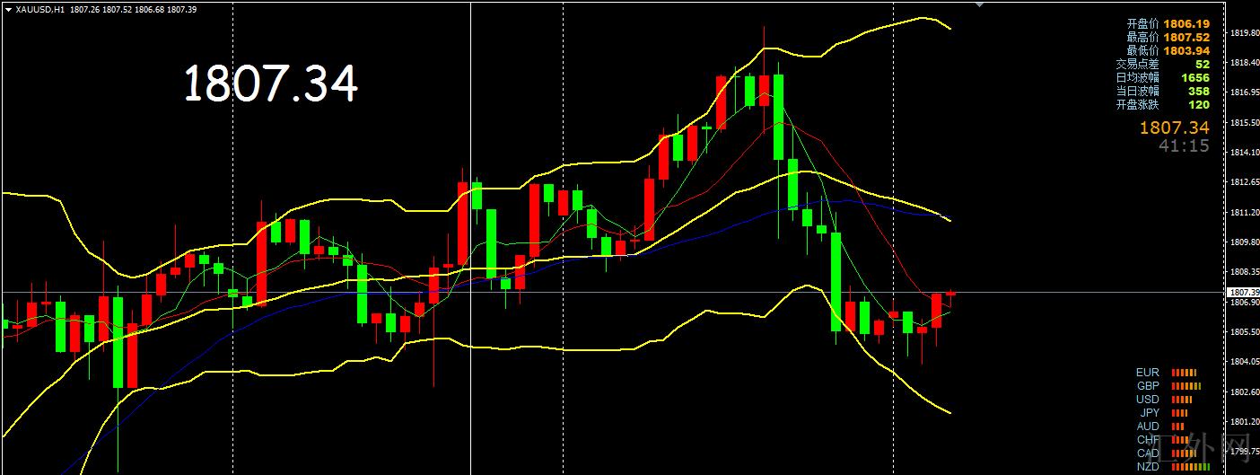 昨日黄金先保持居高窄幅震荡,欧盘时段无意中回涨刺破1815阻力,尽管有刺破但行情如预计的并没有更深一步回涨量能,夜里行情测压到1820一线后遇阻回调,跌至至预计支撑10日K线1805左右,日K线所以收得一带有上影线的阴线。