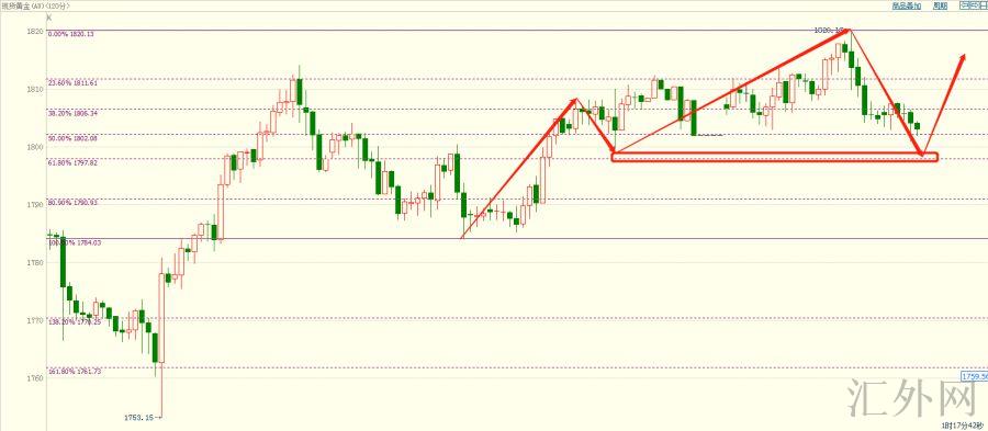 黄金昨天夜间冲顶回调后面,日K线级别收出一根滞涨K线,日间首要呈回调行情,日间的黄金表现的若于白银,这也是比较少见的现象,当前价格回调至最后一次黄金分割50%的位置遭遇支撑,价格显现适当的反向,假使价格不能拉起代表着调动没有到位,以下支撑点注意1795一线,夜里推荐等候价格回调到1795左右线多单介入,风控点放置1788,计划位目睹1806~1808。