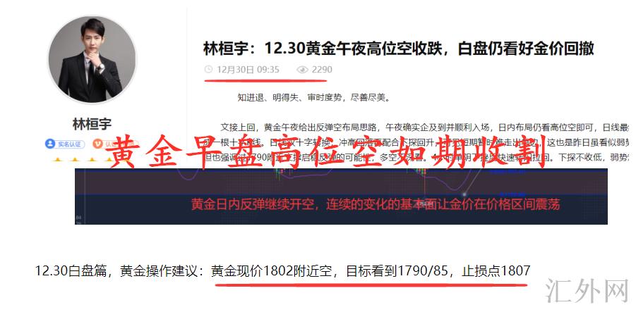 12.30晚盘篇,黄金交易参考:黄金回弹1805/06名置空,计划目睹1790/1788,止损点突破1810出走