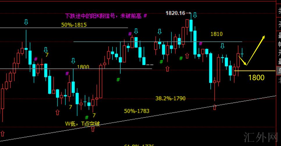 黄金整体震荡,而且依旧看多的震荡行情!昨日日K线收出长下影线,今日又一次收阳,这是又一次上升的节奏,击穿1807阻力后下一计划会是1820名置!方向已经清晰,思路也一直清晰,昨日美盘提示1791干多按计划暴涨,今日也是一直提示1800干多,又一次证明我们策略的正确!