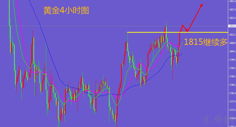 黄金1815多,止损1807,止盈1834