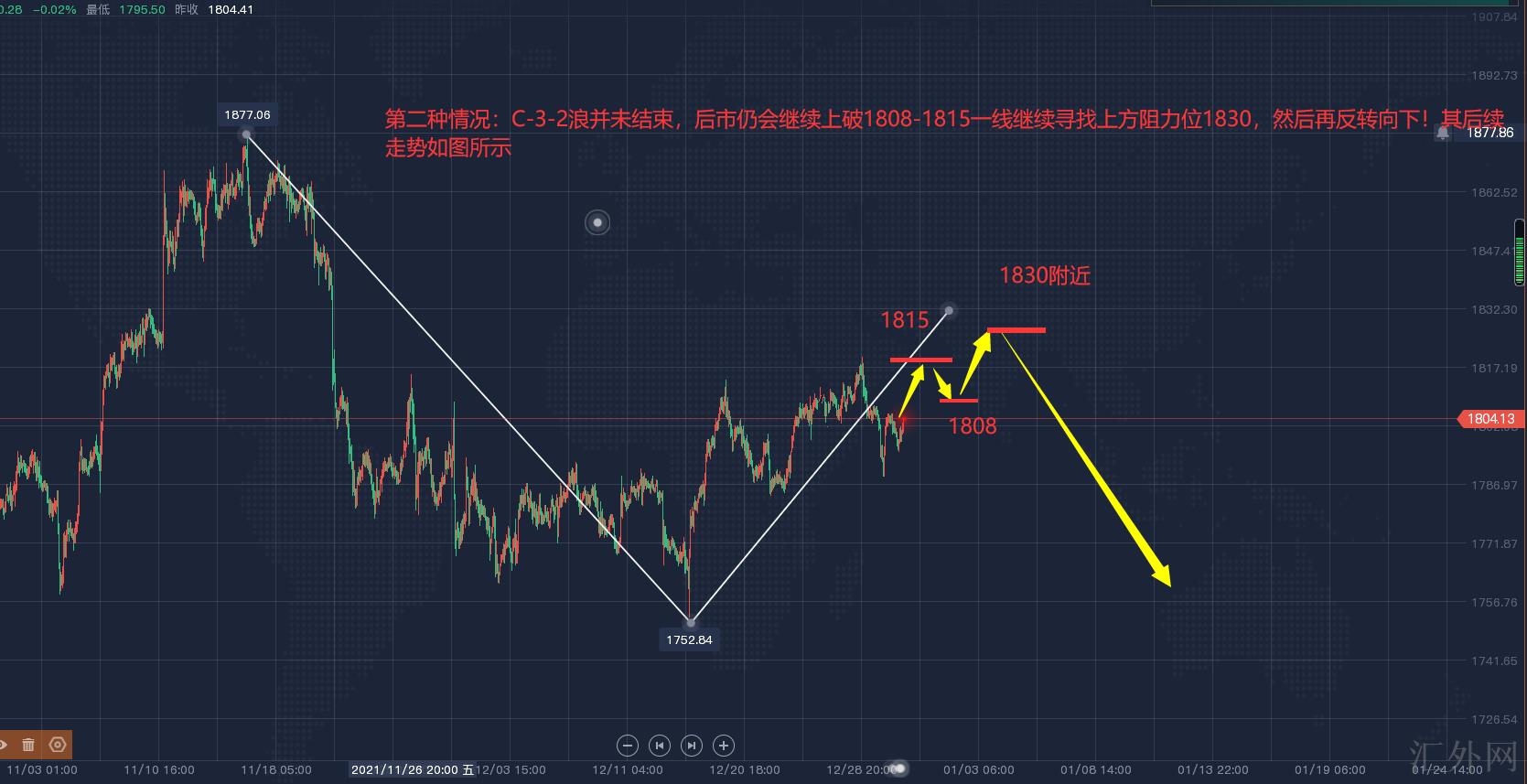 2、C-3-2浪仍未终结,当前行情仍处在C-3-2浪当中,行情仍会持续往上击穿1808-1815后寻求上方压力位1830!